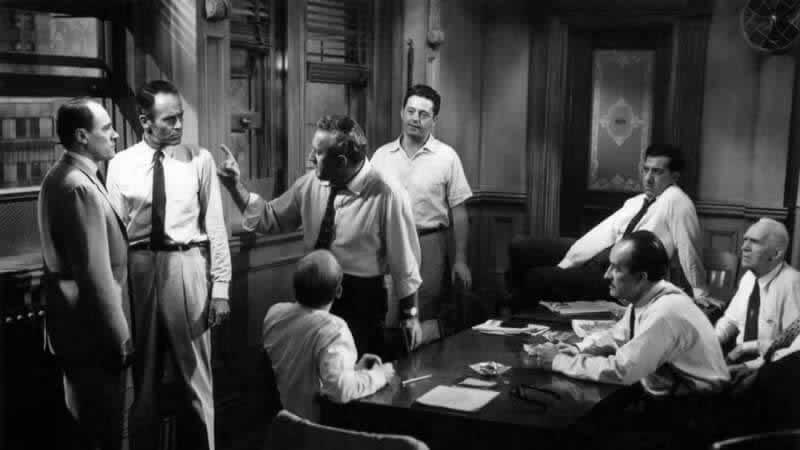 “12 hombres sin piedad” es una obra maestra y la primera película de Sidney Lumet, producida por Henry Fonda y Reginald Rose, también autor del guión. Se estrena el 13 de abril de 1957 en NYC, es nominada a tres Oscar y gana el Oso de Oro en Berlín. Se filma en 17 días con un modesto presupuesto de 340.000 dólares en la Sala del Jurado del Tribunal Superior de Justicia de NY.